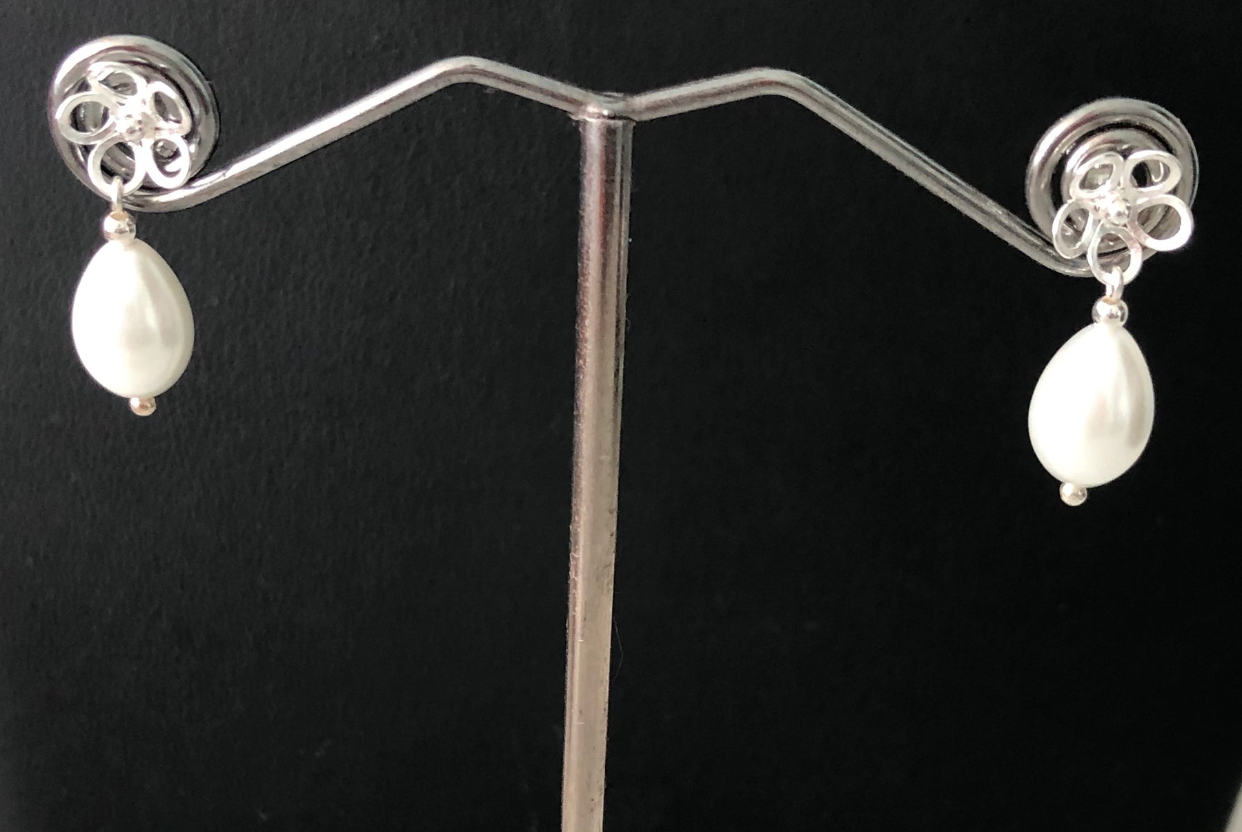 Flowers earrings decorated with pearl