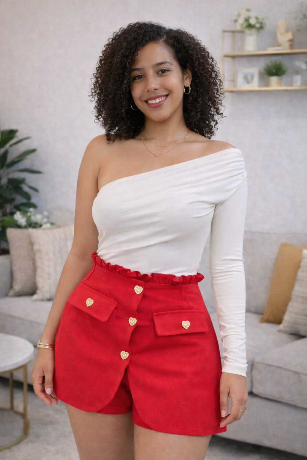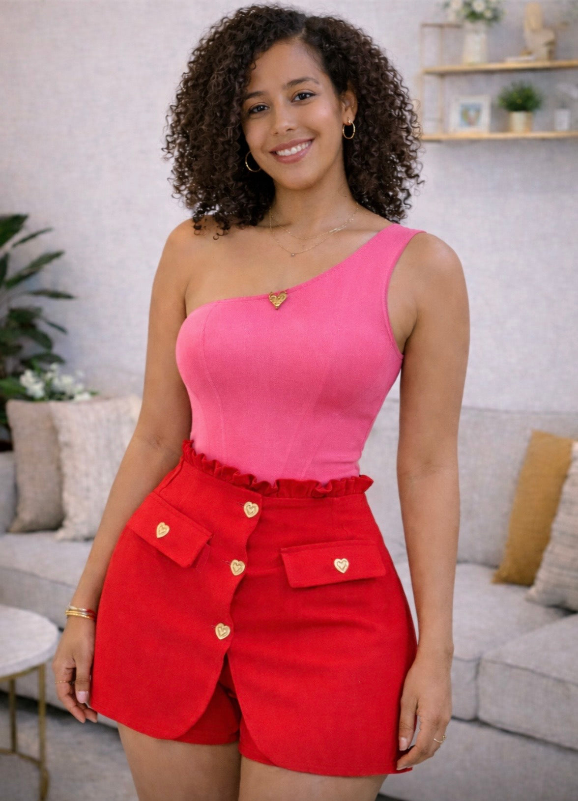 Turn heads with this chic and feminine skort designed to blend style and comfort effortlessly. Featuring a flattering high-waist fit, built-in shorts for confidence, and adorable heart button details, this piece is perfect for elevating any outfit.